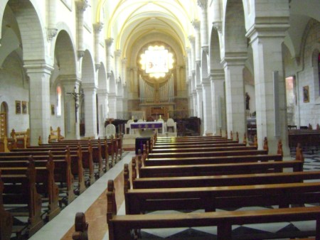 Marele altar din capatul estic, alaturi de cel din partea sudica, apartin grecilor. Altarul principal infatiseaza ochilor un frumos iconostas ortodox. Catapeteasma este impodobita cu ingeri, icoane si candele aurite.