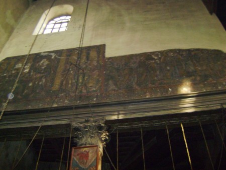 Fragmente foarte calitative de mozaic mural, datand din anii 1160, impodobesc ambele laterale ale navei. Fiecare laterale avea trei registre - lucru stiut dintr-o descriere a Biserica Nasterii datand din anul 1628.