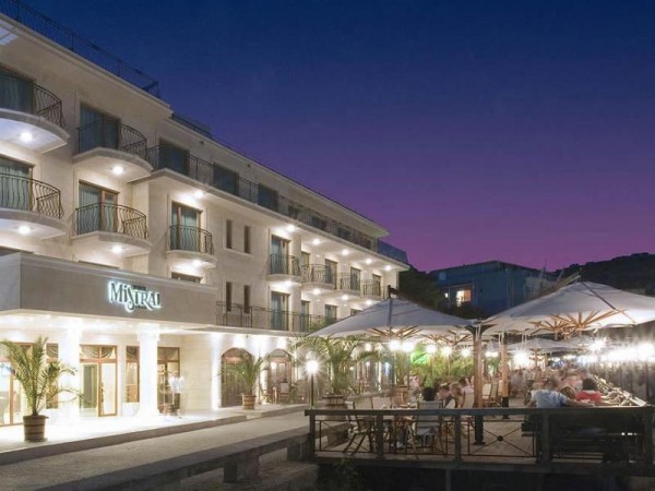 Hotel Mistral este un hotel nou de patru stele situat pe linia intai cu vedere spre mare, chiar langa port. Facilitati: Hotelul ofera facilitati moderne, lobby bar, restaurant in aer liber pe plaja, sala de conferinte. Toate camerele au vedere la mare, aer conditionat, telefon, acces la internet, TV, minibar, dus si uscator de par.