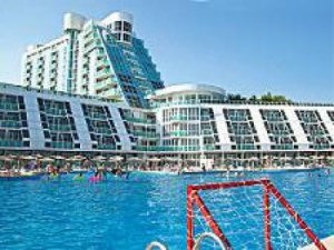 Hotelul: restaurant, bar de zi, piscine cu sectiune pentru copii, terenuri de sport, locuri de joaca pentru copii, animatie.