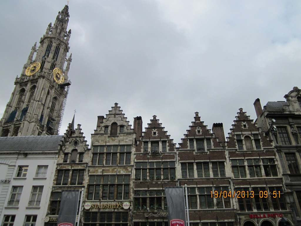 in spatele caselor se vede Catedrala Notre Dame