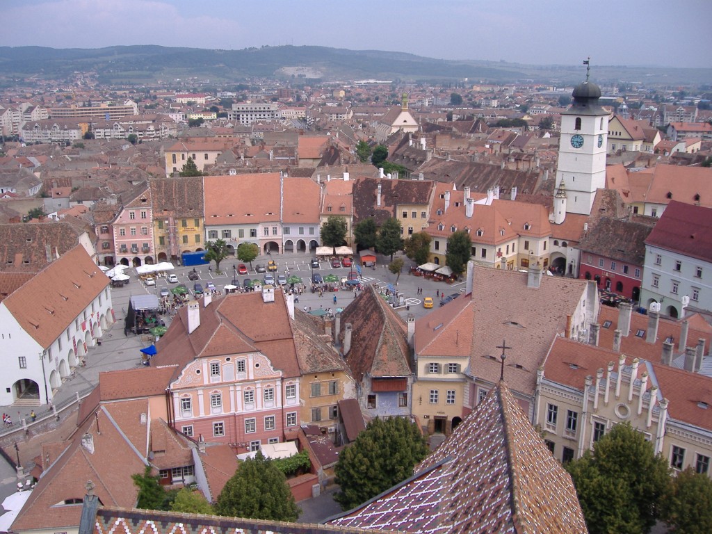 Sibiu-Piata Mica (vazuta din turnul bisericii)