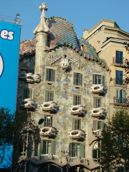 Casa Batllo - in stanga Casa Amatler era in renovare - fatada ascunsa