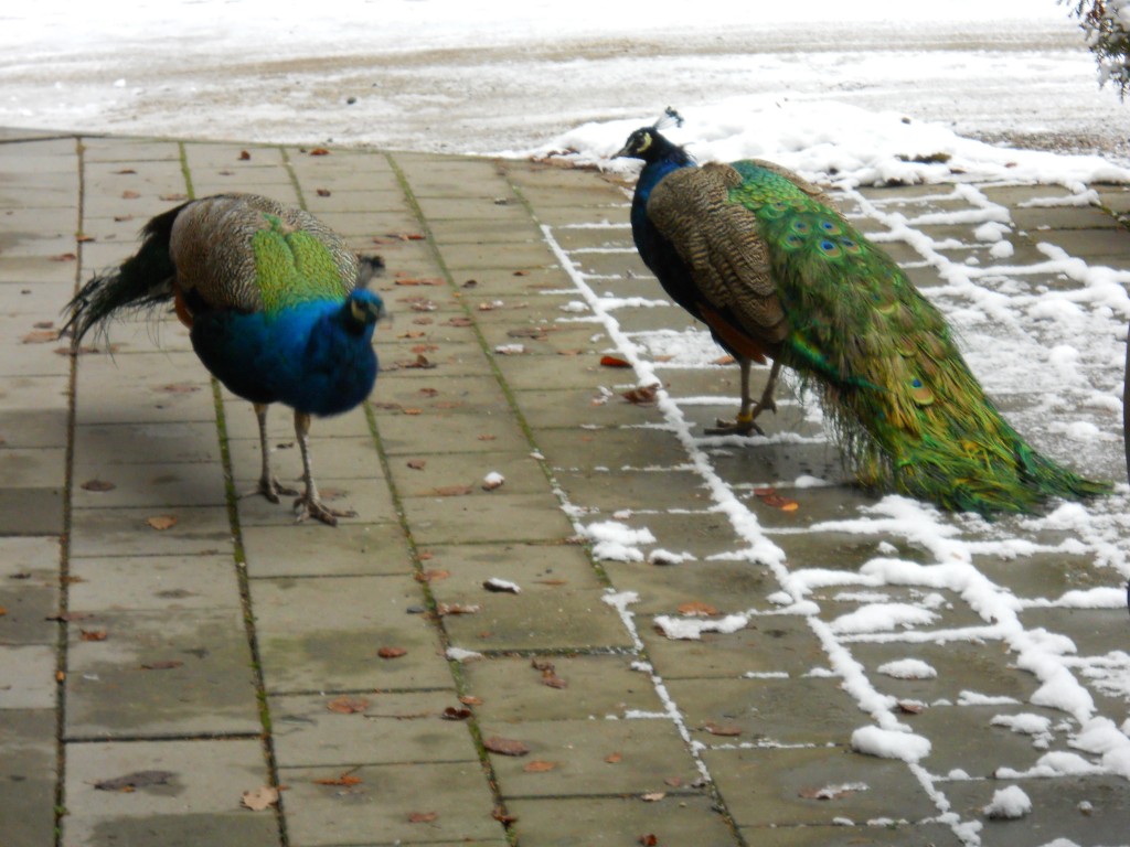 pauni in libertate printre masini
