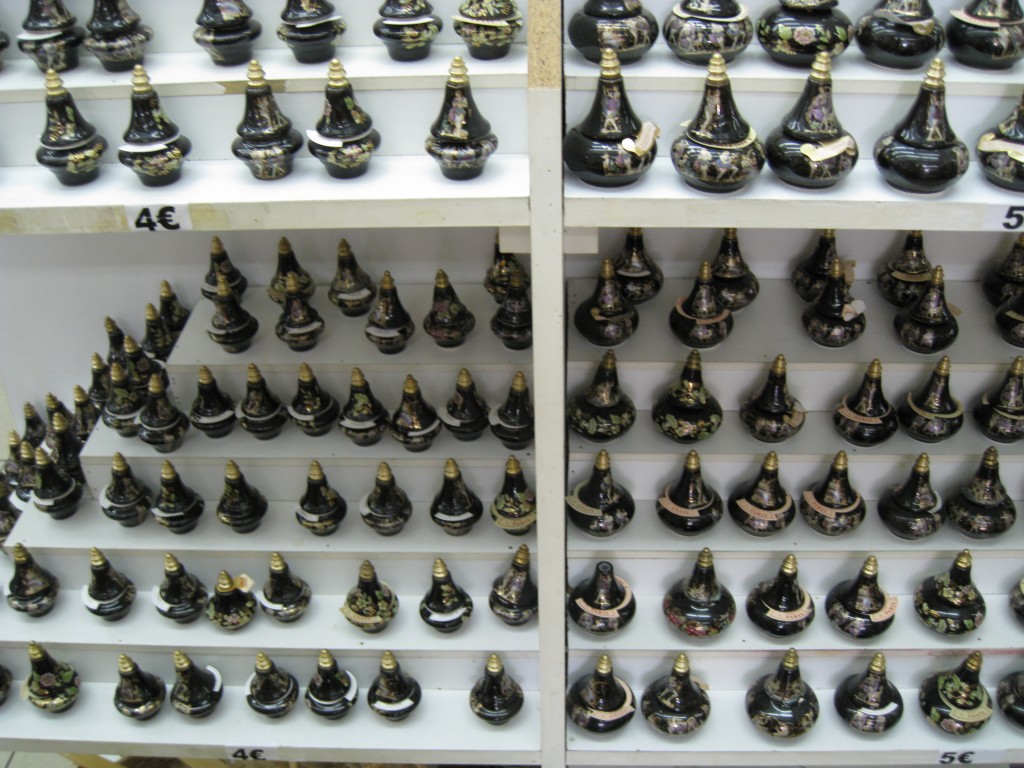 Grecia, Kalambaka: magazin de suveniruri in atelierul de icoane (sticlute de parfum)