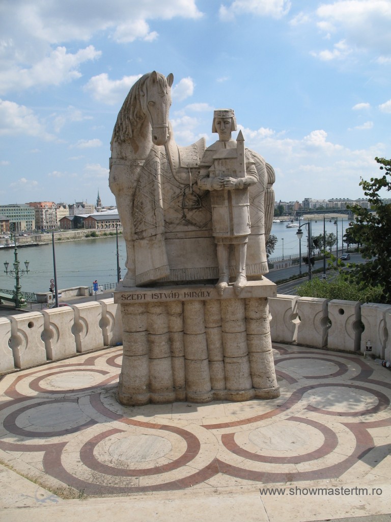 Ansamblu Sculptura in fata bisericii sapate in stanca (Sziklatemplom) langa Hotel Gellert