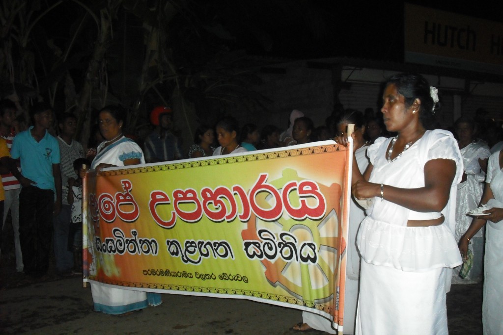 Un panou cu inscriptii despre templu organizator al procesiunii.