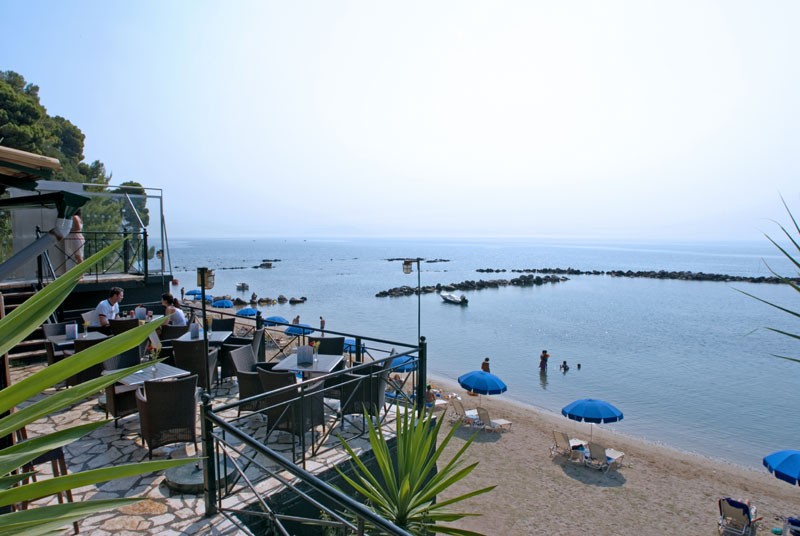Pentru a ajunge la plaja se coboara pe scari cca. 100m. Statiunea: Kanoni.