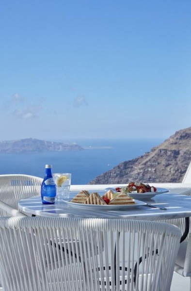 Piscina infinită are vedere la caldera. Facilităţile de spa includ cadă cu hidromasaj încălzită în aer liber şi pat de masaj.