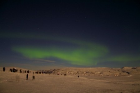 Seara, plecam spre un platou, departe de luminile orasului, de unde se presupune ca am putea vedea aurora boreala. Din punctul meu de vedere, asta e cel mai important "obiectiv" al plimbarii prin Islanda - dar pentru a-l putea atinge, trebuie: a) sa fie senin (si din fericire e senin - in ciuda a ceea ce spunea weather.com, care tocmai a capatat in ochii mei renumele de cel mai prost site meteo din univers); b) sa fie frig. e frig; si c) sa ai bafta. evident, am :D. Astfel incat, dupa ce inghet o jumatate de ora pazind trepiedul in zapada, apare si o aurora. Nu chiar asa cum vezi in pozele de pe site-urile agentiilor de turism, dar... e o aurora. E a noastra si e frumoasa :)). Satisfacuti, ii facem un pic in ciuda receptionerului de la hotel, care ne daduse mai putin de 50% sanse inainte de a pleca :D.