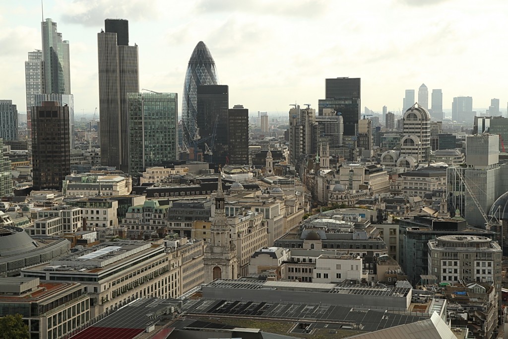 - centrul financiar, cladiri inalte, strazi medievale, biserici
