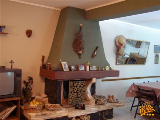 La parterul Pensiunii se afla un salon de 50mp care include living-room si sufragerie, unde elementul de atractie maxim este semineul.