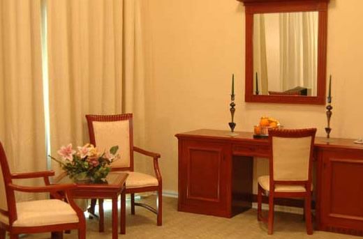 Are 157 de camere din care 22 apartamente, toate spatiile de cazare fiind complet dotate conform standardului: minibar, linie telefonica internationala, cablu TV, aer conditionat, seif, balcon, baie cu cabina dus hidromasaj. Toate apartamentele au 2 camere, pat matrimonial in dormitor si canapea extensibila in living, balcon sau terasa cu vedere la mare. Apartamentele de lux au jacuzzi in baie.