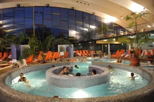 Agrement : piscină interioară şi două piscine exterioare cu apă termală, saună, solar. În apropiere: teren de tenis, închirieri biciclete, are secţie medicală proprie ptr tratamente