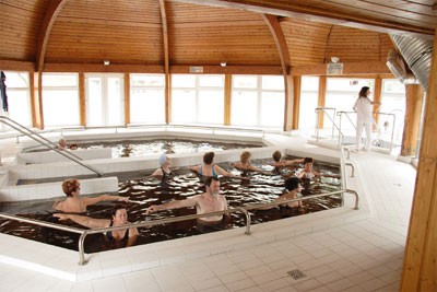 Sport şi fitness: piscină interioară şi exterioară cu apă termală, solar, saună, infrasaună, baie cu aburi, teren de tenis, tenis de masă, teren de fotbal.